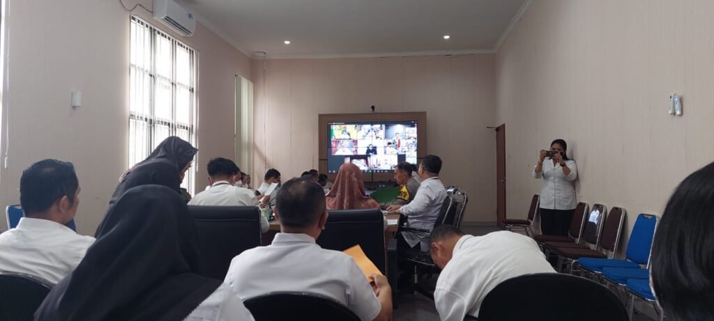 Suasana zoom meeting Rakor Pengendalian Inflasi di Ruang Video Conference Diskominfoperstik Kutim. Foto: Bella Pro Kutim