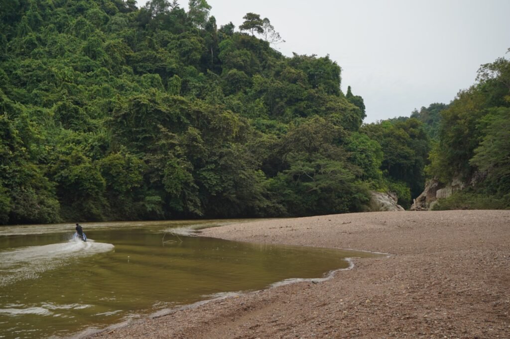 “Bagusnya jika saat keadaan sungai surut, dataran tanah yang berisi ribuan batu kerikil ini bisa digunakan sebagai lokasi kemping. Lokasinya cukup luas untuk mendirikan tenda,” jelasnya.