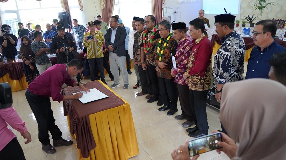 Suasana Musrenbangcam Sangkulirang dan Sandaran yang dipimpin langsung oleh Bupati Kutim H Ardiansyah Sulaiman didampingi Wabup H Kasmidi Bulang. Selain itu juga hadir Ketua DPRD Kutim H Joni dan anggota legislatif dapil setempat. Camat Sangkulirang Rahmad dan Camat Sandaran Tri Sukadar beserta Kades kedua kecamatan. Unsur Muspika, perwakilan perusahaan serta undangan lainnya. Foto: Fuji Pro Kutim
