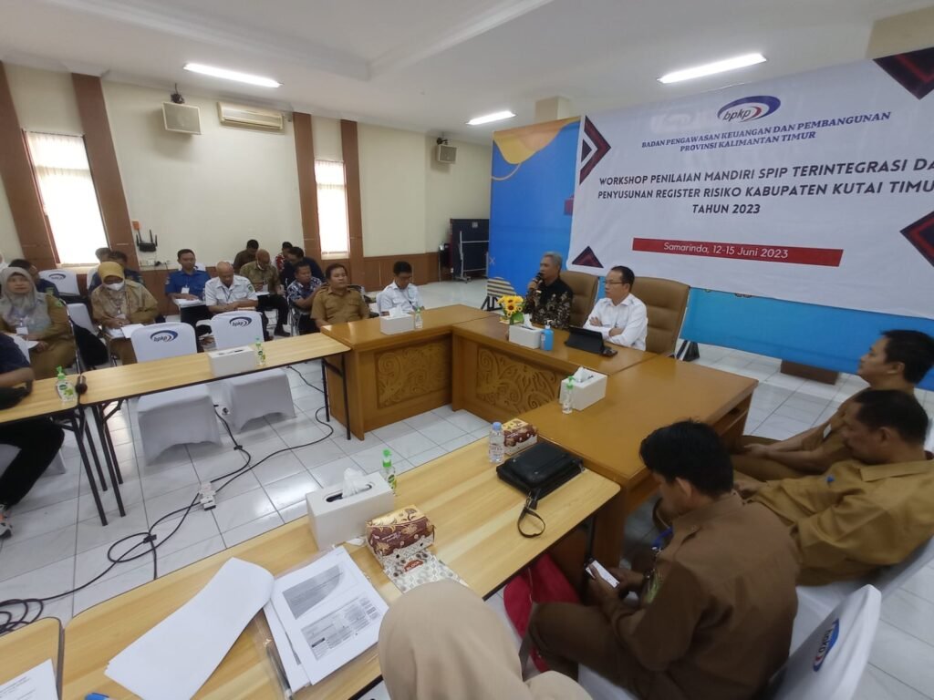 SAMARINDA – Mewujudkan tercapainya efektivitas dan efisiensi penyelenggaraan pemerintahan negara juga keandalan pelaporan keuangan, pengamanan aset negara, dan ketaatan perundang-undangan, Pemkab Kutim melalui Bagian Keuangan mengundang para perwakilan dari OPD-OPD ikut dalam Workshop Penilaian Mandiri Sistem Pengendalian Intern Pemerintah (SPIP) Terintegrasi dan Penyusunan Register Risiko Kabupaten Kutim oleh Badan Pengawasan Keuangan dan Pembangunan (BPKP) Kaltim di Gedung Aula Maratua BPKP Kaltim Jalan MT Haryono, Senin (12/6/2023).