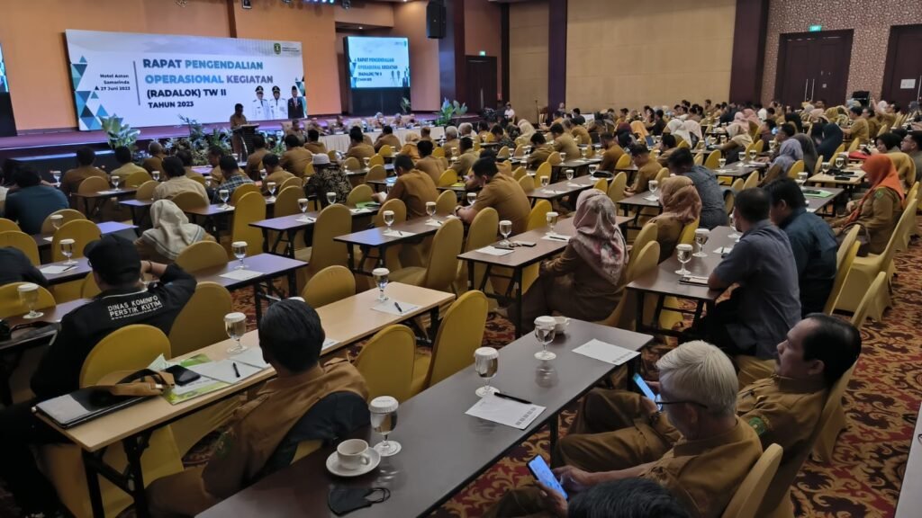 Bupati Kutim Ardiansyah Sulaiman dan Wabup Kasmidi Bulang saat menghadiri Rapat Pengendalian Operasional Kegiatan (Radalok) Triwulan II di Samarinda pada Selasa (27/6/2023). Foto: Fuji Pro Kutim