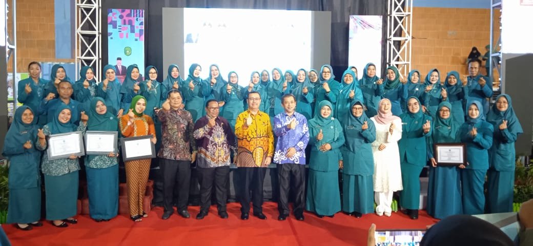 Momen penghargaan dan foto bersama TP PKK Kutim bersama Wagub Kaltim Hadi Mulyadi dan jajaran Pejabat Pemkab Kutim. Foto: Yuni/Pro Kutim
