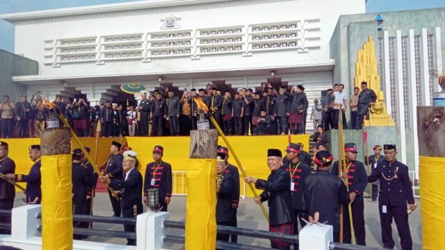 Hadir : Mewakili Bupati Ardiansyah Sulaiman yang bertugas ke pedalaman Kutim, Asisten III Seskab hadir di pembukaan Erau Adat Pelas Benua 2023. (Ronall J Warsa/Pro Kutim)
