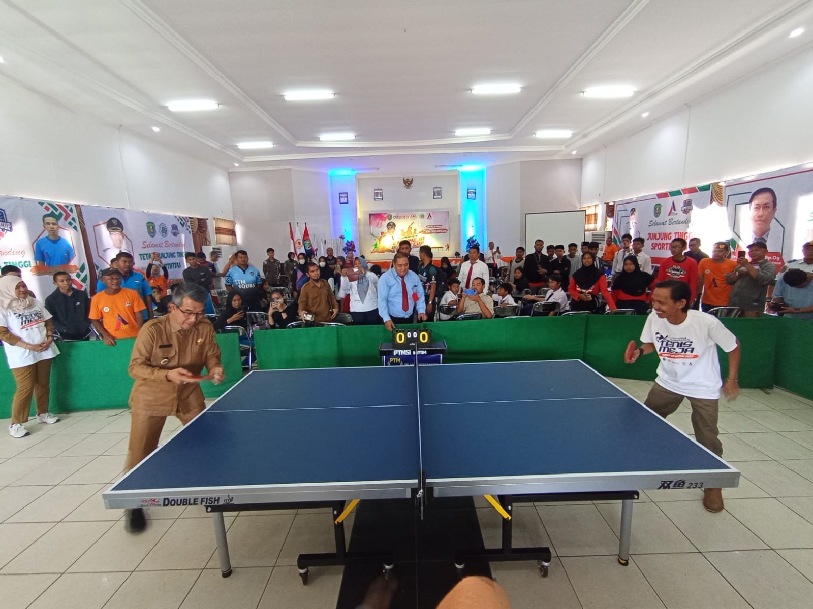 Momentum pembukaan Turnamen Tenis Meja Bupati Cup di BPU Kantor Camat Sangatta Utara, Senin (9/10/2023).Foto: Wahyu/Pro Kutim