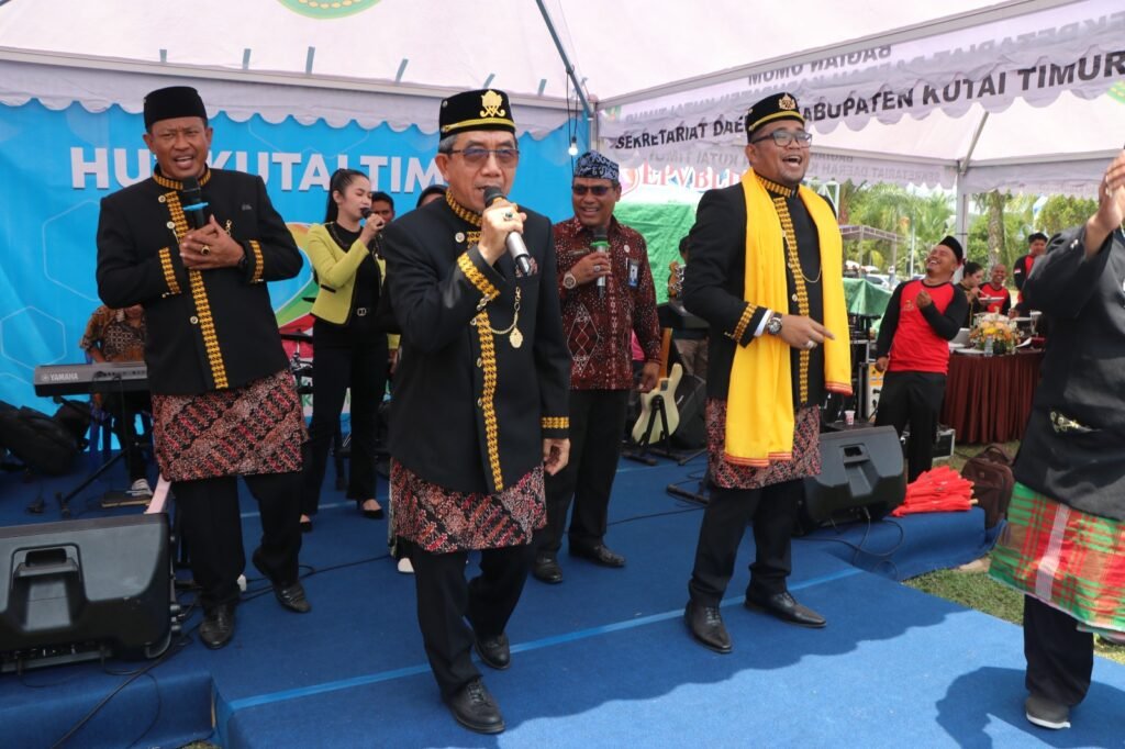 Tampak Bupati Kutim Ardiansyah Sulaiman didampingi Wabup Kasmidi Bulang dan jajaran Forkopimda hangat bercengkerama dengan masyarakat Kutim. Sambil santap makan siang sebagai bentuk syukur di hari jadi Kutim. Bupati Kutim Ardiansyah Sulaiman dan Wabup Kasmidi Bulang juga turut menyumbangkan lagu.