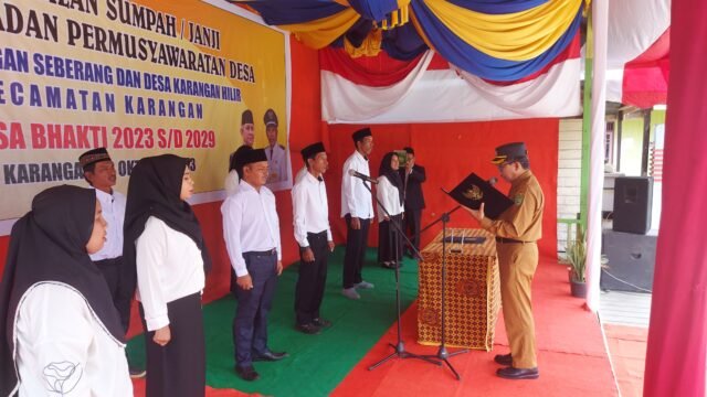 Di Kecamatan Karangan, Bupati memimpin prosesi pengambilan sumpah dan janji Anggota Badan Permusyawaratan Desa (BPD) Karangan Dalam dan Karangan Hilir untuk masa bakti 2023-2029. Serta Anggota BPD Pengganti Antar Waktu Desa Batu Lepoq. Proses dimaksud turut disaksikan Kepala Dinas Pemberdayaan Masyarakat dan Pemerintahan Desa (DPMDes) Kutim Yuriansyah T, Camat Karangan Madnuh, para Kepala Desa se-Karangan, unsur Forkopimcam serta masyarakat lainnya.
