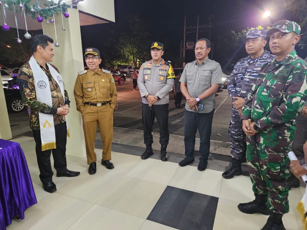 Bupati Kutim Ardiansyah Sulaiman bersama jajaran Forkopimda memantau jalannya kelancaran malam Misa Natal 2023, salah satunya di Gereja Oikoumene Umat Kristen (POUK). Foto: Basuki Isnawan/Pro Kutim