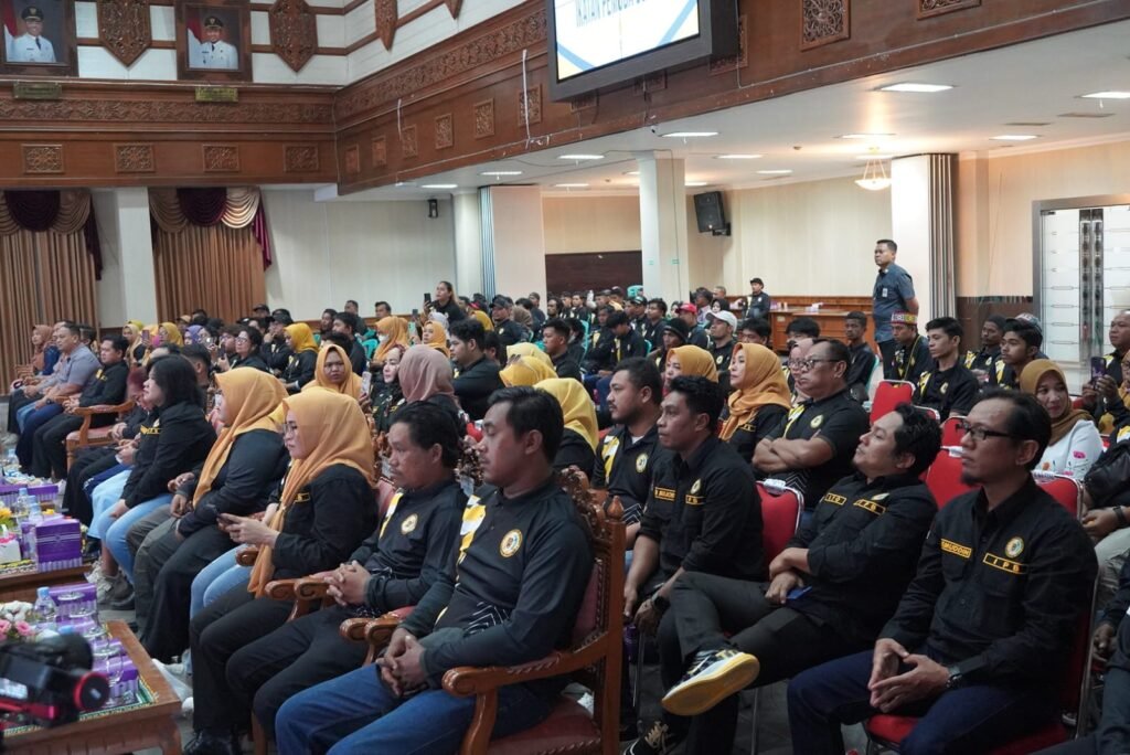 Momen Bupati Ardiansyah Sulaiman saat mengukuhkan Pengurus Ikatan Pemuda Borneo (IPB) Kabupaten Kutai Timur (Kutim) masa bhakti 2024-2029. Foto : Nasruddin/Pro Kutim.