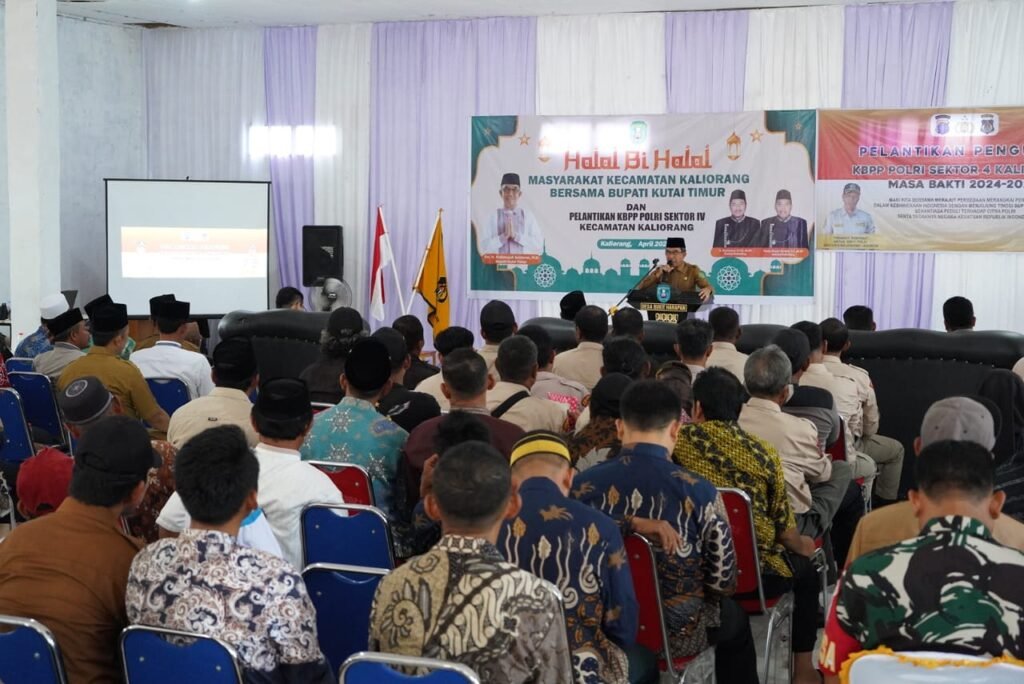 KALIORANG – Pelantikan pengurus Keluarga Besar Putra-Putri (KBPP) Polri Sektor Kaliorang – Kaubun turut dihadiri Bupati Kutai Timur (Kutim) Ardiansyah Sulaiman didampingi istri Siti Robiah. Pelantikan dirangkai dengan halal bihalal bersama masyarakat Kaliorang ini digelar di Balai Pertemuan Umum (BPU) Desa Bukit Harapan, Selasa (30/4/2024) pagi.