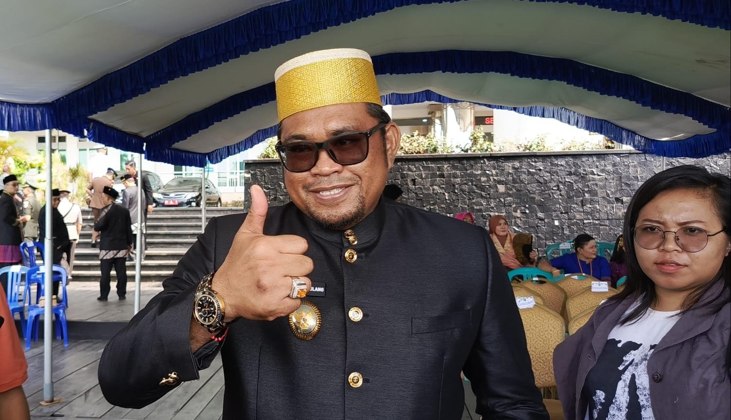 Wakil Bupati Kutai Timur Kasmidi Bulang saat diwawancarai awak media setelah Upacara Hari Pendidikan Nasional (Hardiknas) pada 2 Mei 2024. Foto: Istimewa
