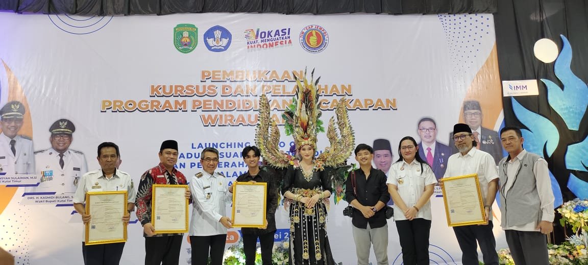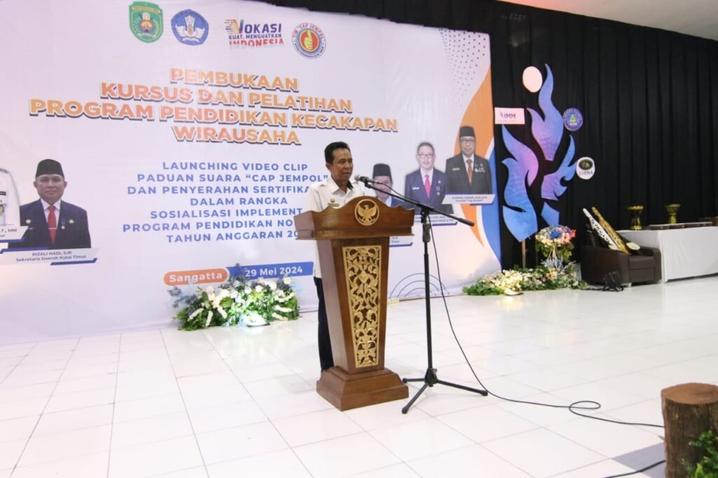 SANGATTA – Dalam sebuah acara penuh semangat yang berlangsung di Gedung Buana Mekar, Dinas Pendidikan dan Kebudayaan (Disdikbud) Kutai Timur (Kutim) menggelar Kursus dan Pelatihan Program Pendidikan Bidang Kewirausahaan. Acara ini ditandai dengan penyerahan sertifikat Hak Kekayaan Intelektual (HKI) dari Kementerian Hukum dan Hak Asasi Manusia (Kemenkumham) kepada Pemerintah Kabupaten Kutai Timur (Pemkab Kutim), Rabu (29/5/2024).
