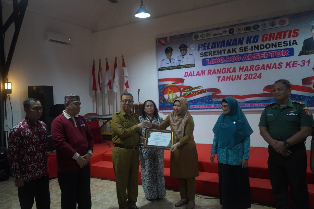 Dalam momen ini turut diserahkan penyerahan piagam atas partisipasi pada kegiatan pelayanan KB serentak 1 juta akseptor. Piagam diserahkan oleh Asisten Pemkesra Poniso Suryo Renggono kepada Kepala Dinas Kesehatan, Ketua TP PKK Kutim, perwakilan Dandim 0909/KTM, Camat Sangatta Selatan, Ketua Pimpinan PKM Sangatta Selatan dan Ketua PC IBI. Dilanjutkan penyerahan bingkisan kepada 5 orang akseptor KB diserahkan oleh Ketua TP PKK Kutim Siti Robiah Ardiansyah kepada Zelin Reziana, Rani Febri Yanti, Erna, Nur Liana dan Sri Wahyuni.(kopi9/kopi13/kopi3)