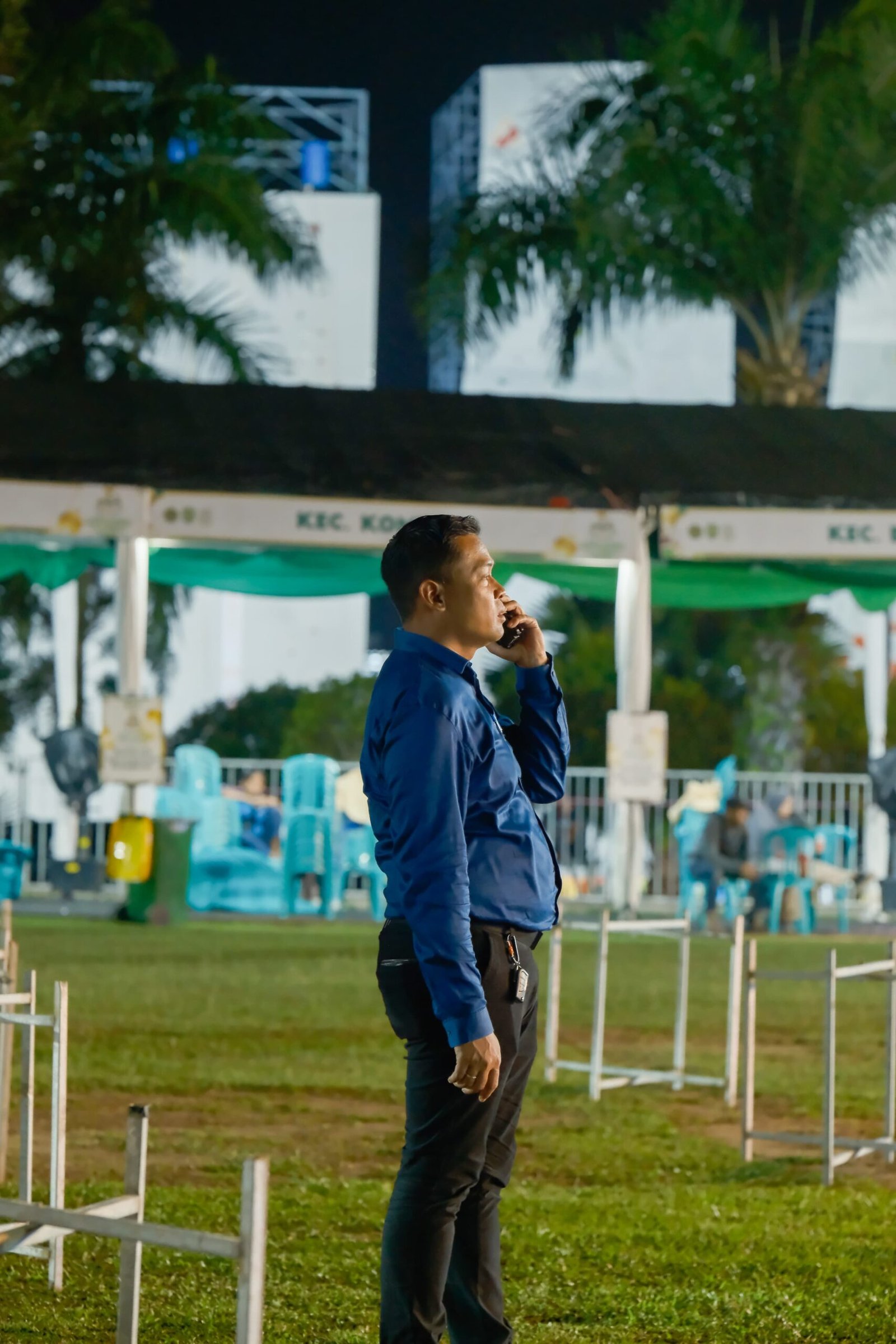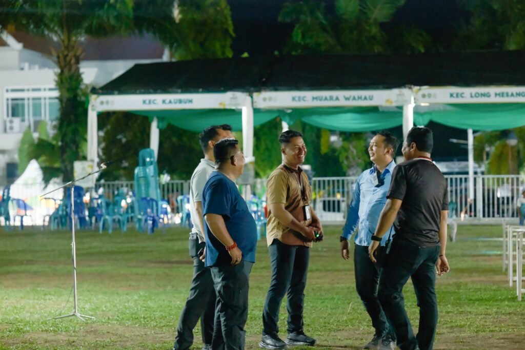 SANGATTA- Plt Kepala Bagian Protokol Komunikasi Pimpinan Sekretariat Kabupaten (Prokopim Setkab) Kutai Timur (Kutim) Iwan Adiputra, bersama personel protokol lainnya sudah melaksanakan persiapan matang untuk acara penutupan Musabaqah Tilawatil Quran (MTQ) XVII Kutai Timur (Kutim). Gladi bersih telah dilakukan pada Jumat (28/6/2024) malam di lokasi utama, Lapangan Heliped, Komplek Pusat Perkantoran Pemkab Kutim di Bukit Pelangi, Sangatta.