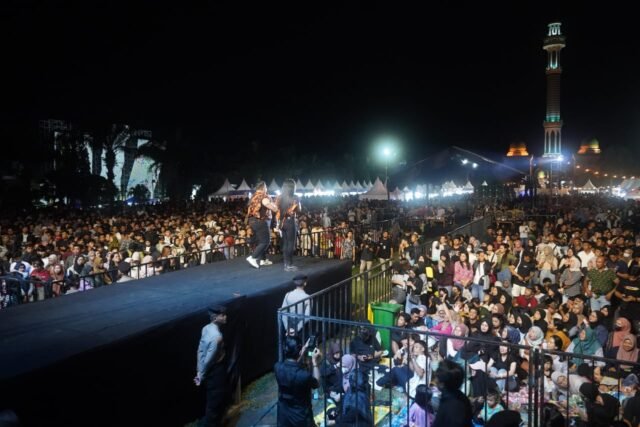 SANGATTA – Malam puncak Pekan Raya Pemuda II mengusung “Peningkatan Kolaborasi Pemuda dan Pemerintah Menuju Pembangunan Daerah” gelaran Dispora Kutim berlangsung sukses dan semarak di Lapangan Heliped Alun-alun Bukit Pelangi, Sabtu (20/7/2024) malam. Suasana tambah begitu meriah, panitia pelaksana (Panpel) turut menghadirkan artis Bondan Prakoso and band.