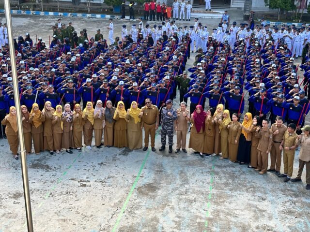 SANGATTA – Wakil Bupati Kutai Timur (Wabup Kutim) Kasmidi Bulang memimpin upacara pelepasan 415 calon taruna taruni Sekolah Menengah Kejuruan Negeri (SMKN) 2 Sangatta Utara untuk mengikuti kegiatan orientasi atau pembaretan pada Senin (22/07/2024). Kegiatan orientasi akan dilaksanakan di Mako Lanal Sangatta dan berlangsung selama tiga hari.