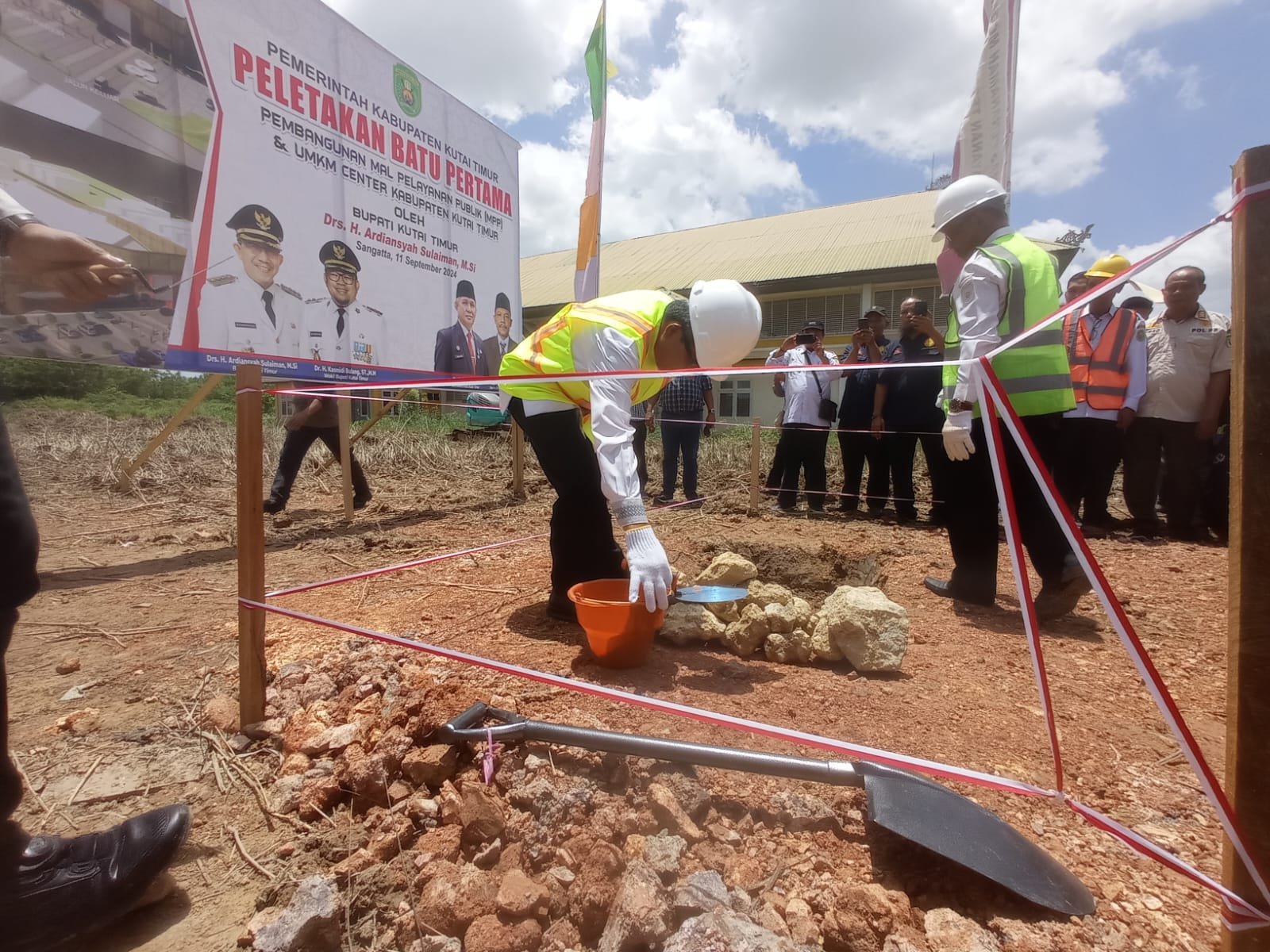 Bupati Ardiansyah Sulaiman meletakkan batu pertama menandai pembangunan awal MPP dan UMKM Center Kutim. Foto: Irfan/Pro Kutim