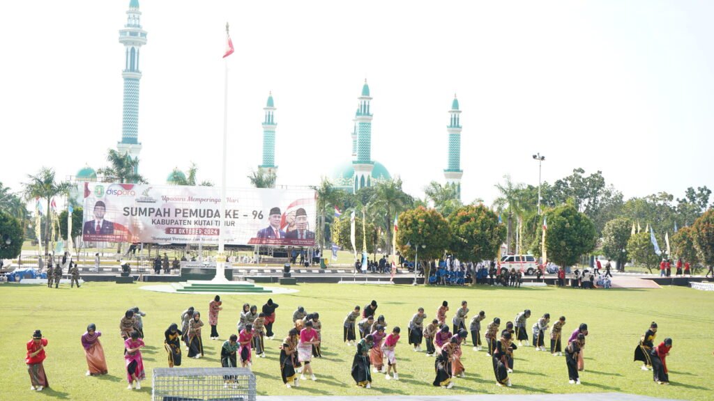 SANGATTA – Pemerintah Kabupaten Kutai Timur (Pemkab Kutim) memperingati Hari Sumpah Pemuda ke-96 dengan upacara khidmat di lapangan Kantor Bupati Kutai Timur pada Senin (28/10/2024) pagi. Acara ini diselenggarakan oleh Dinas Pemuda dan Olahraga Kutai Timur dan dihadiri sejumlah pejabat penting, termasuk Pjs Bupati Kutai Timur Agus Hari Kesuma, Kepala Dinas Pemuda dan Olahraga Basuki Isnawan, Kepala Bapenda Syahfur, Ketua DPRD Kutai Timur Jimmy, dan anggota Forum Koordinasi Pimpinan Daerah (Forkopimda).