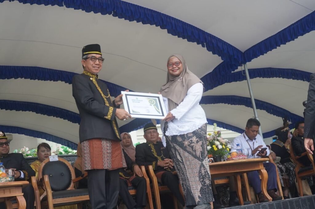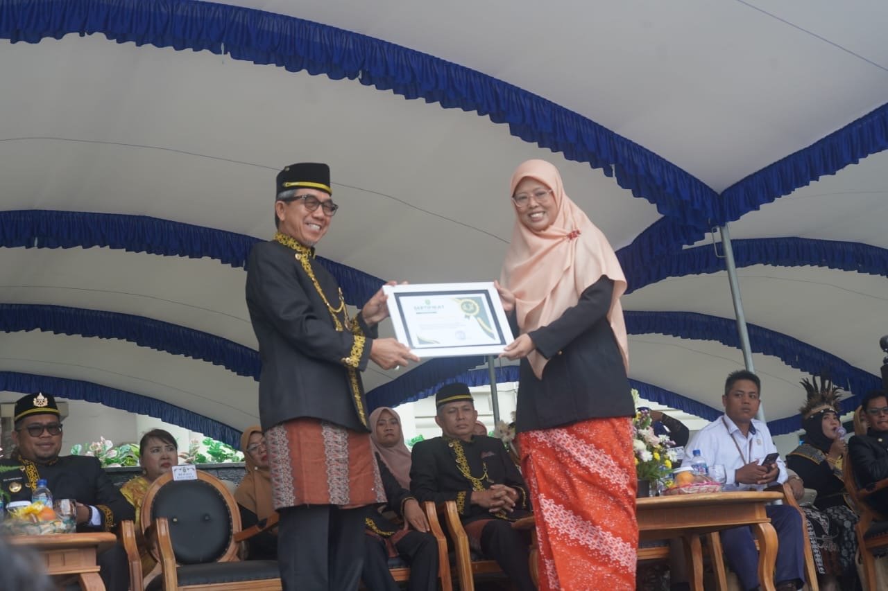 Bupati Kutim Ardiansyah Sulaiman menyerahkan penghargaan kepada guru dan kepala sekolah berprestasi. Foto: Yuni/Pro Kutim