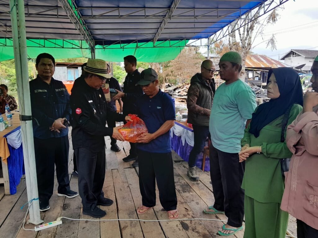 Bupati Ardiansyah Sulaiman secara simbolis memberikan bantuan kebakaran di Desa Kernyanyan. Foto: Fuji Pro Kutim