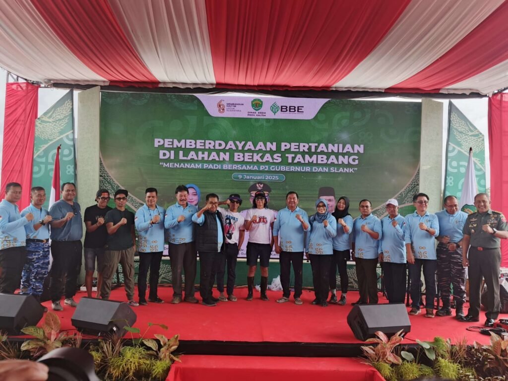 KUTAI KARTANEGARA – Penanaman bibit padi di lahan eks tambang batu bara di Kecamatan Loa Janan, Kelurahan Loa Duri Ulu, menjadi momen istimewa dalam rangkaian peringatan Hari Ulang Tahun (HUT) ke-68 Provinsi Kalimantan Timur (Kaltim), Kamis (9/1/2025). Kegiatan ini digagas oleh Pemerintah Provinsi Kaltim bersama PT Bukit Baeduri Energi (BBE) dalam upaya pemberdayaan pertanian dan pengembangan ketahanan pangan.