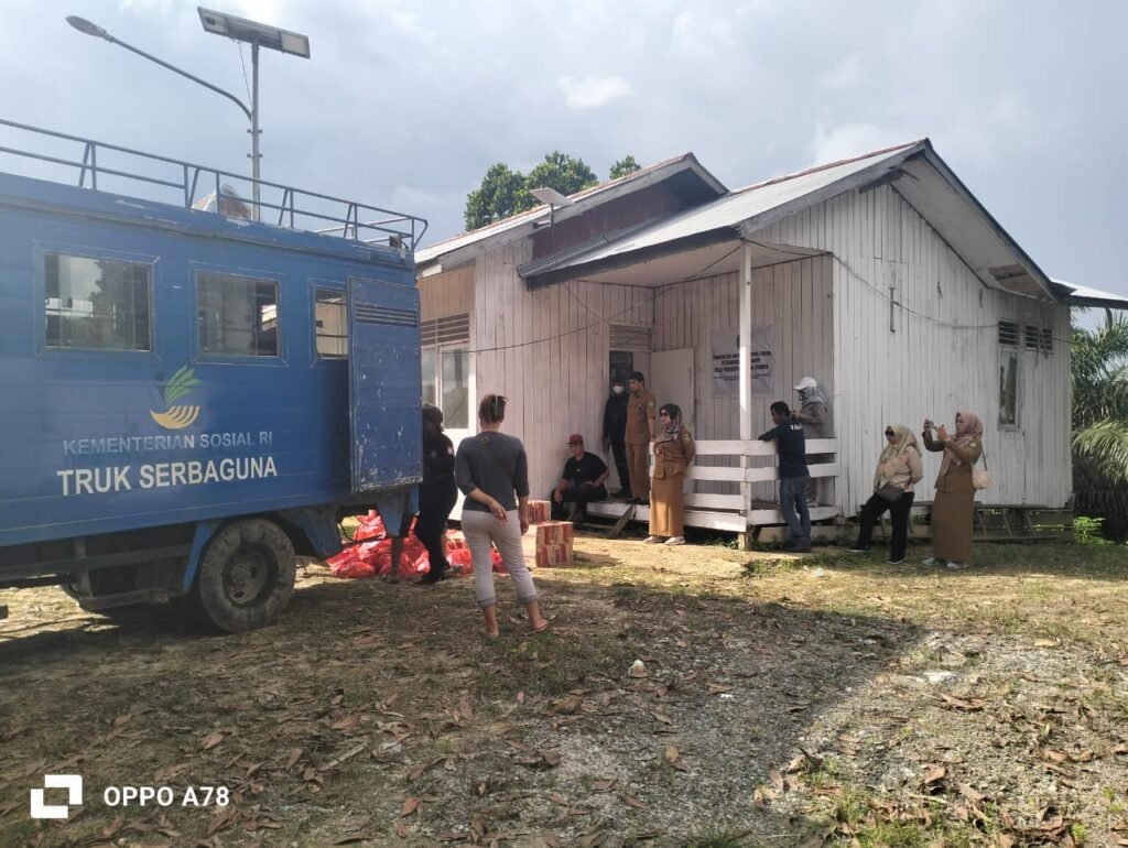 Sebanyak 45 paket sembako disalurkan ke Dusun 04 RT 11, Desa Persiapan Tepian Budaya/Meratak, Desa Tepian Langsat, Kecamatan Bengalon.