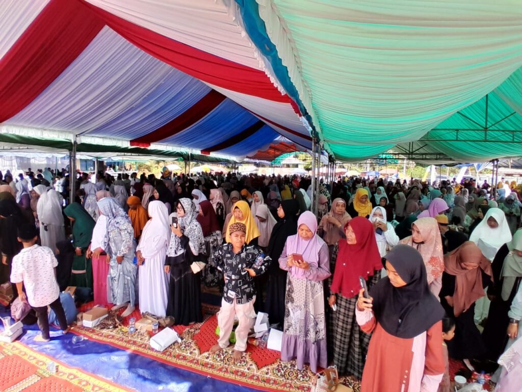 “Kolaborasi inilah yang akan mempercepat pembangunan berkelanjutan. Cara terbaik kita mensyukuri pembangunan ini adalah dengan memperkuat spiritualitas, salah satunya lewat tausiah oleh Hj. Kharisma Yogi Noviana dari Madiun,” jelasnya.