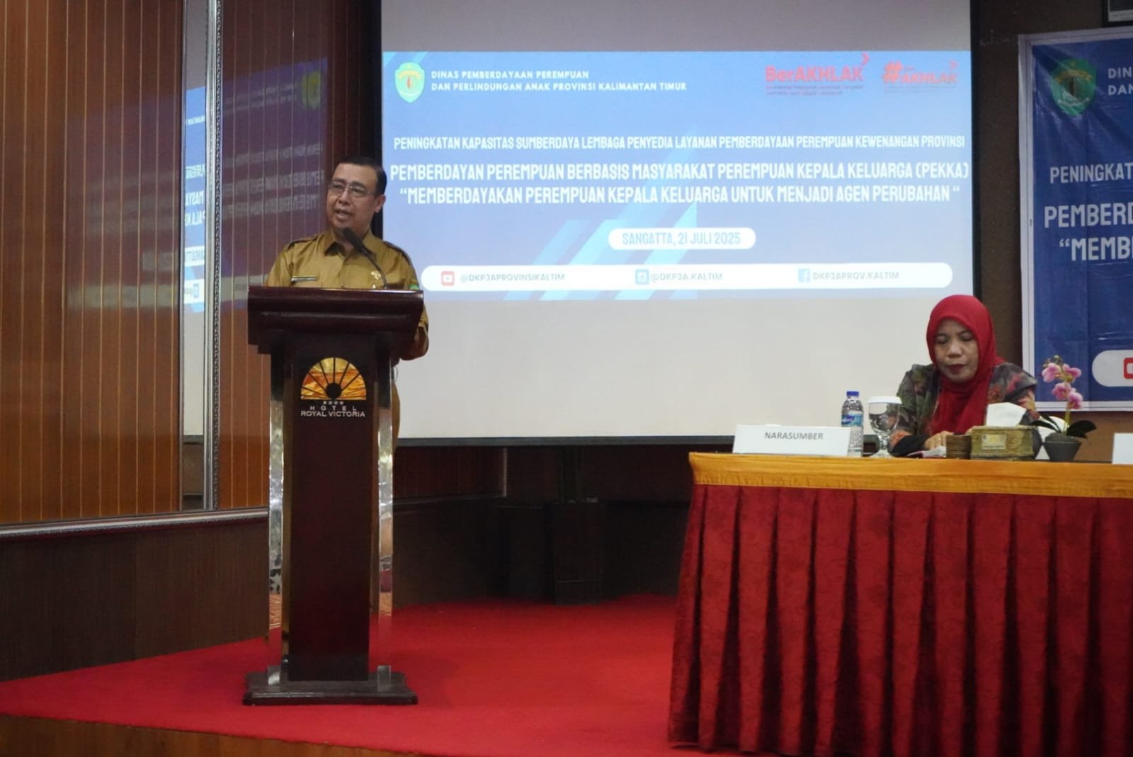 SANGATTA – Dinas Pemberdayaan Perempuan dan Perlindungan Anak (DPPPA) Provinsi Kaltim melaksanakan kegiatan Peningkatan Kapasitas Sumber Daya Layanan bagi Perempuan Kepala Keluarga (PEKA) dengan tema “Memberdayakan Perempuan Kepala Keluarga untuk Menjadi Agen Perubahan”, Senin (21/7/2025) pagi di Room Pelangi 1 Hotel Royal Victoria.