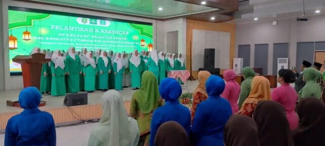 SANGATTA – Iringan salawat Badar menggema dari Gedung Wanita, Pusat Perkantoran Pemerintah Kabupaten Kutai Timur (Pemkab Kutim) di Bukit Pelangi pada Minggu (27/7/2025) pagi. Di tengah suasana khidmat, Pimpinan Cabang Fatayat Nahdlatul Ulama (PC Fatayat NU) Kutim beserta dua Pimpinan Anak Cabang (PAC) dari Sangatta Utara dan Sangatta Selatan resmi dilantik untuk masa khidmat 2022–2027. Prosesi pelantikan ini tidak hanya menandai awal masa kepengurusan baru, tetapi juga menegaskan komitmen Fatayat NU sebagai penggerak perempuan di daerah yang sedang tumbuh pesat ini.