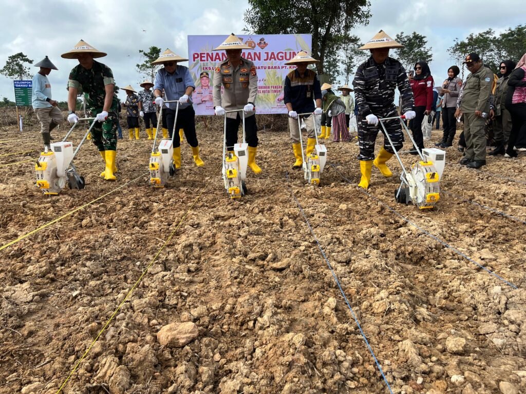 SANGATTA- Kolaborasi Polres Kutim dan KPC di lahan bekas tambang Telaga Batu Arang (TBA) jadi bagian konkret mendukung program ketahanan pangan nasional. Lahan bekas tambang TBA, yang dulunya hanya menyisakan jejak ekskavator dan debu batu bara, kini berubah wajah. Di atasnya tumbuh harapan baru. Hamparan jagung yang ditanam di atas lahan seluas 10 hektare. Hasil kolaborasi Polres Kutim, PT Kaltim Prima Coal (KPC), dan Dinas Tanaman Pangan Holtikultura dan Peternakan (DTPHP) Kutim. Inilah salah satu bentuk nyata dukungan terhadap Program Ketahanan Pangan Nasional yang dicanangkan Presiden RI Prabowo Subianto.