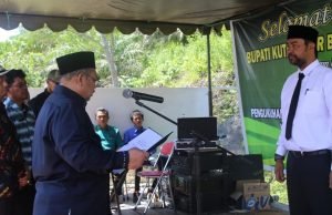 Bupati Kutim Ismunandar Saat Mengkuhkan Pj Kepala Desa Persiapan Tepian Raya (Foto: Wak Hedir Humas)