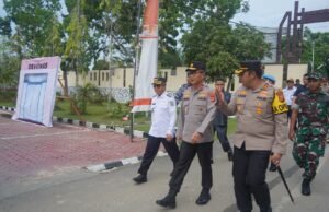 Bupati Kutim Ardiansyah Sulaiman menghadiri kegiatan undangan Apel Kesiapan Sispamkota dan Deklarasi Pemilu Damai 2024, Rabu (27/09/2023) di Lapangan Mako Polres Kutim. Foto: Yuni/Pro...